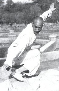 Another famous product of this early period is Lu Zhen Duo. Lu Zhen Duo practiced traditional Chinese medicine, made his living as a martial arts instructor and was the head of security for a convoy service. Born in 1903 in Hebei’s Cangzhou Prefecture, Lu began training at age seven with Yang Kunshan. (Yang was a disciple of Chen Guangzhi, who studied under 2nd-generation Mizong master Chen Shan). Yang was impressed with Lu’s outstanding character and physical abilities and eventually accepted Lu as a formal disciple and entrusted him with his entire knowledge of Mizong Quan, and Qingping swordsmanship, as well as Yang Style Tai Chi. Lu traveled extensively throughout China to sharpen his skills and exchange techniques with other famous masters. Among the lasting friendships formed was one with Li Jinling, a well-known Taoist sword expert. He participated in many no-holds-barred contests, pitting his skills against the best of his generation. He became famous for knocking out opponents with iron-palm strikes.